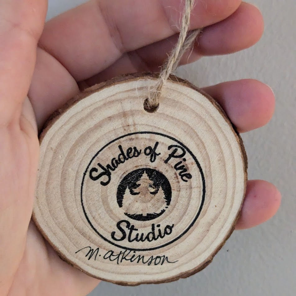 Handpainted with archival quality acrylic paints on a 2.5" diameter natural wood slice. Hand stamped with Shades of Pine logo on the back of the ornament. Signed by the artist. Sealed with matte waterproof clear coat to protect the finish for years to come. Twine hanger included. Ready to hang on your tree or to give as a gift.