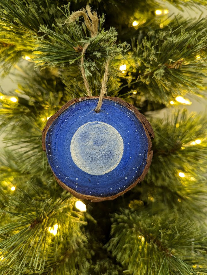 Hand painted Full Moon Wood Slice Ornament